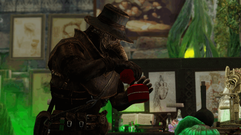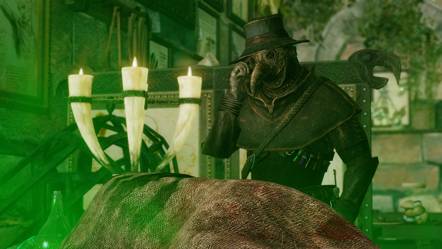 かつての家主が装備していたペストマスク型の装備MODもあります。画像でもこちらを装備して撮影しています。