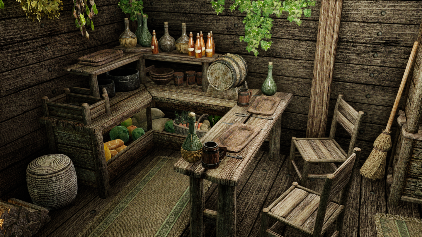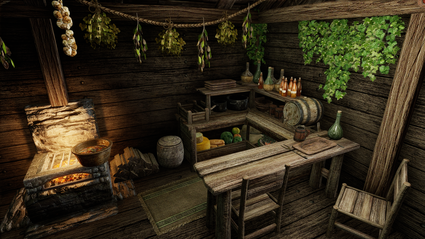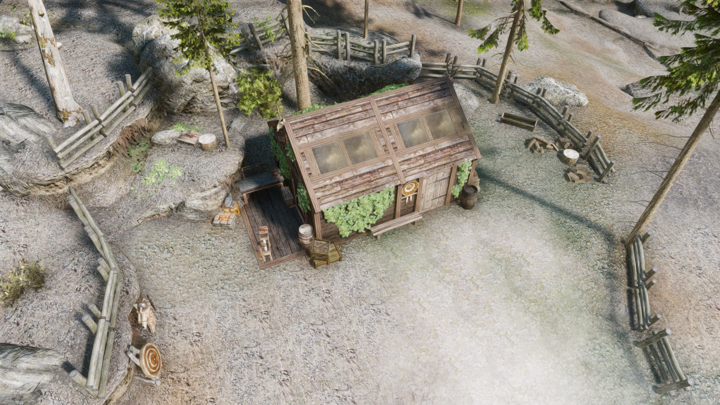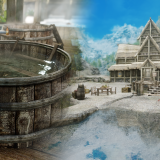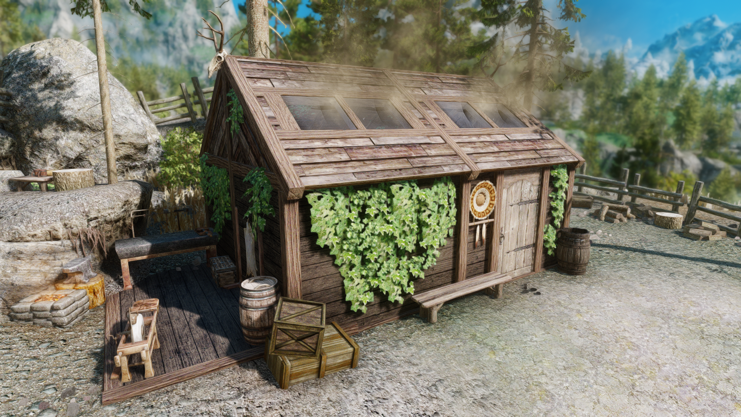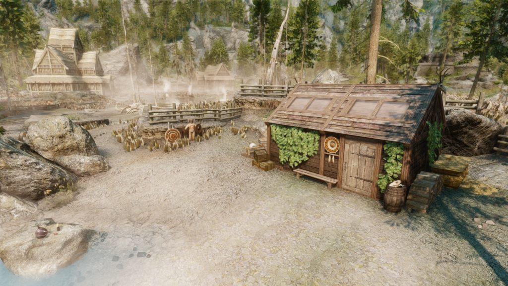 イーストマーチ地方・エルダーグリーム聖域の近くに、少人数向けの家を追加するMODです。天窓から光を採り込むことができるのが特徴になっています。家の前に温泉があります。