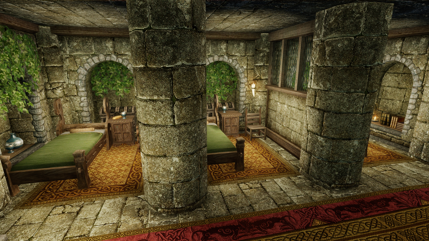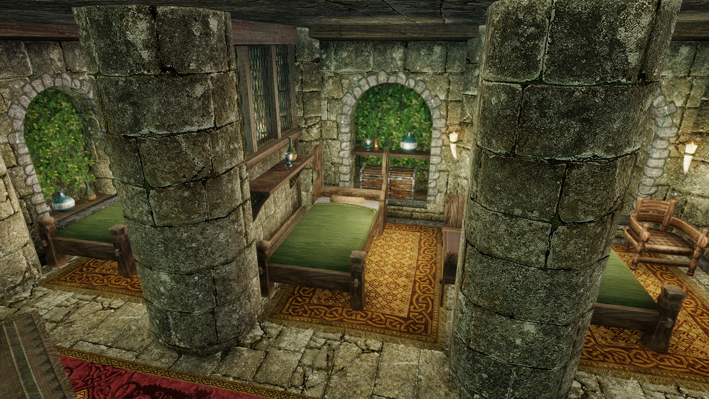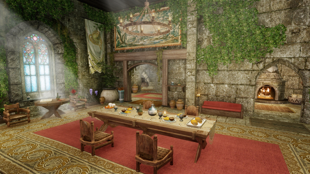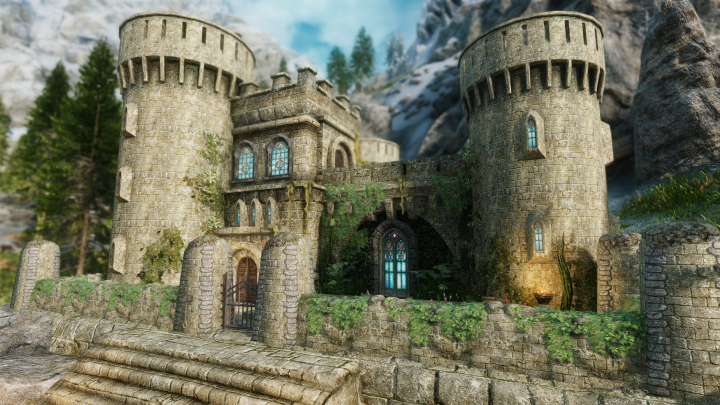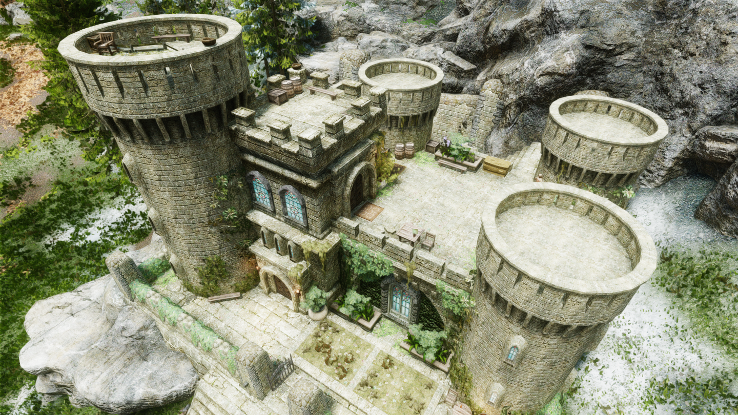 ホワイトランのペラジア農園近くに、古城タイプのプレイヤーハウスを追加するMODです。子供用を含むたくさんのベッドや一通りの生産設備、何種類もの屋内プールなどが用意されています。