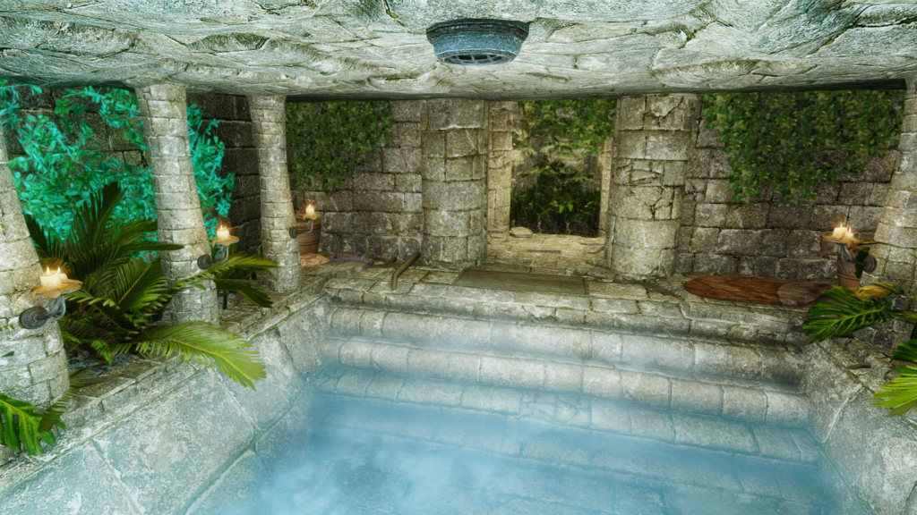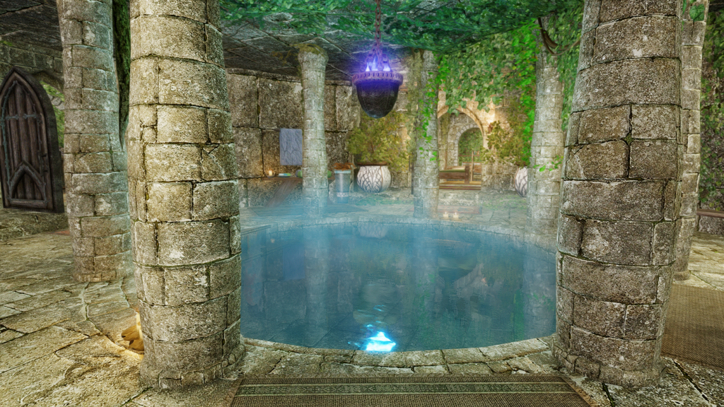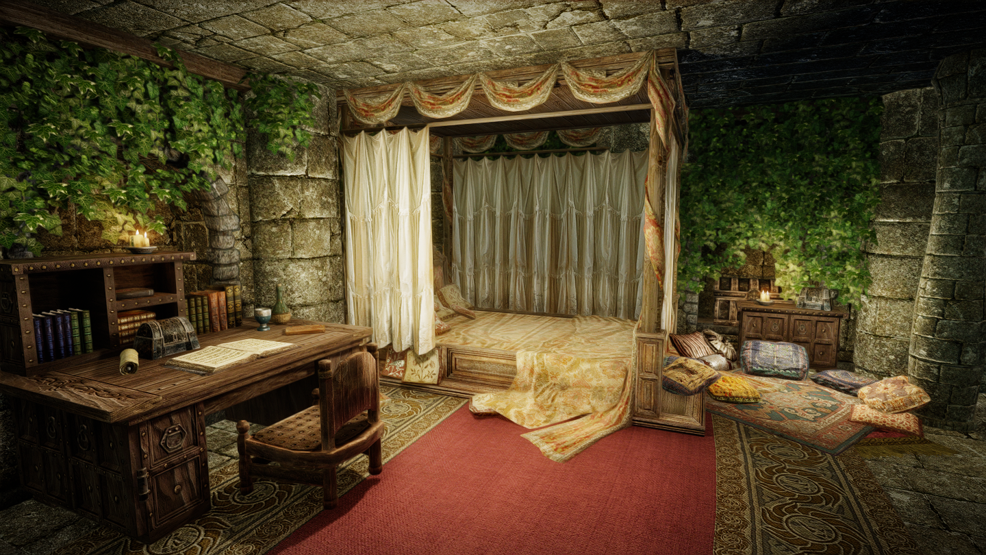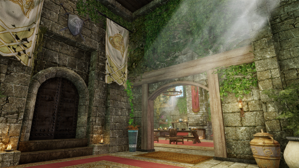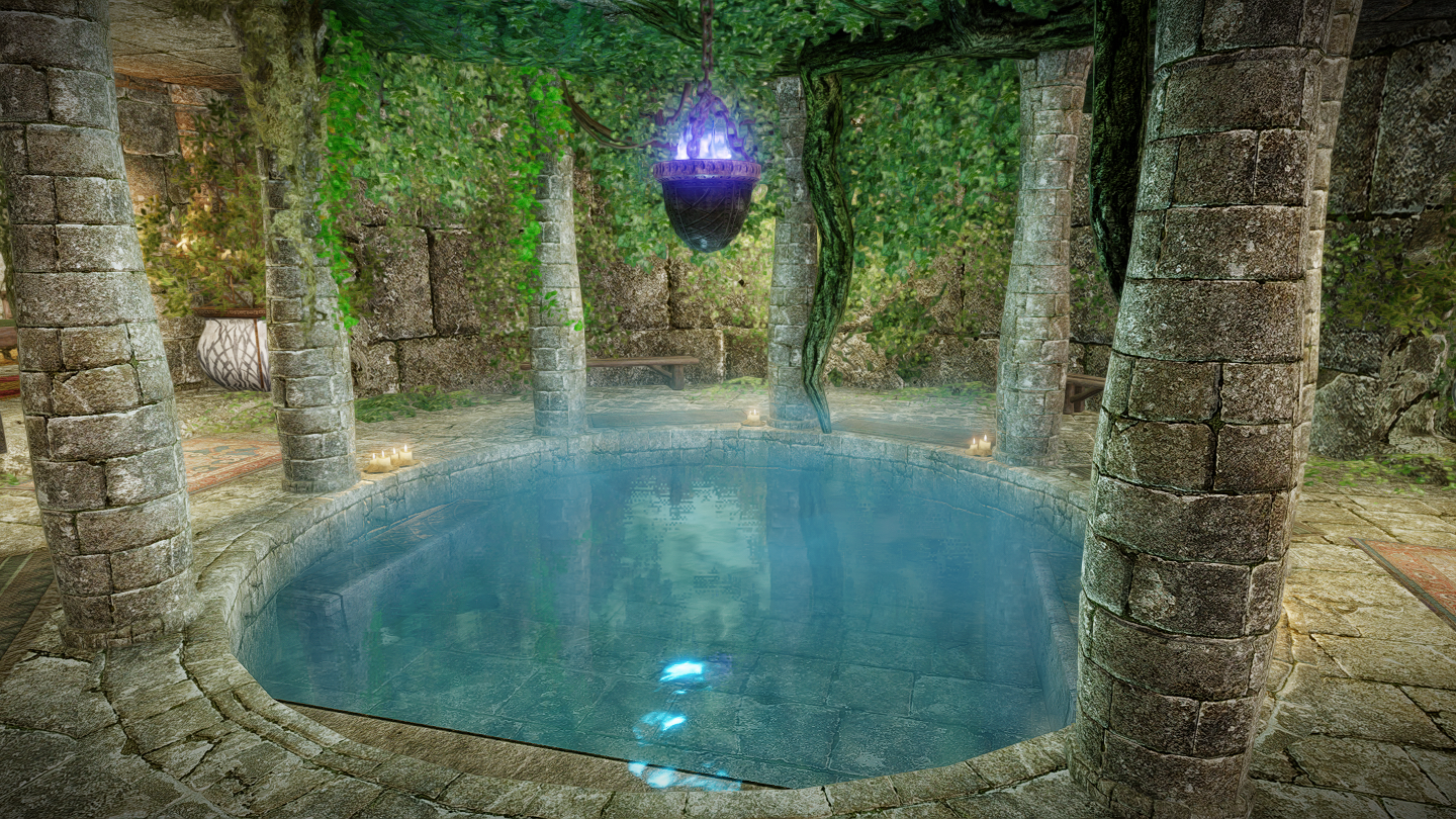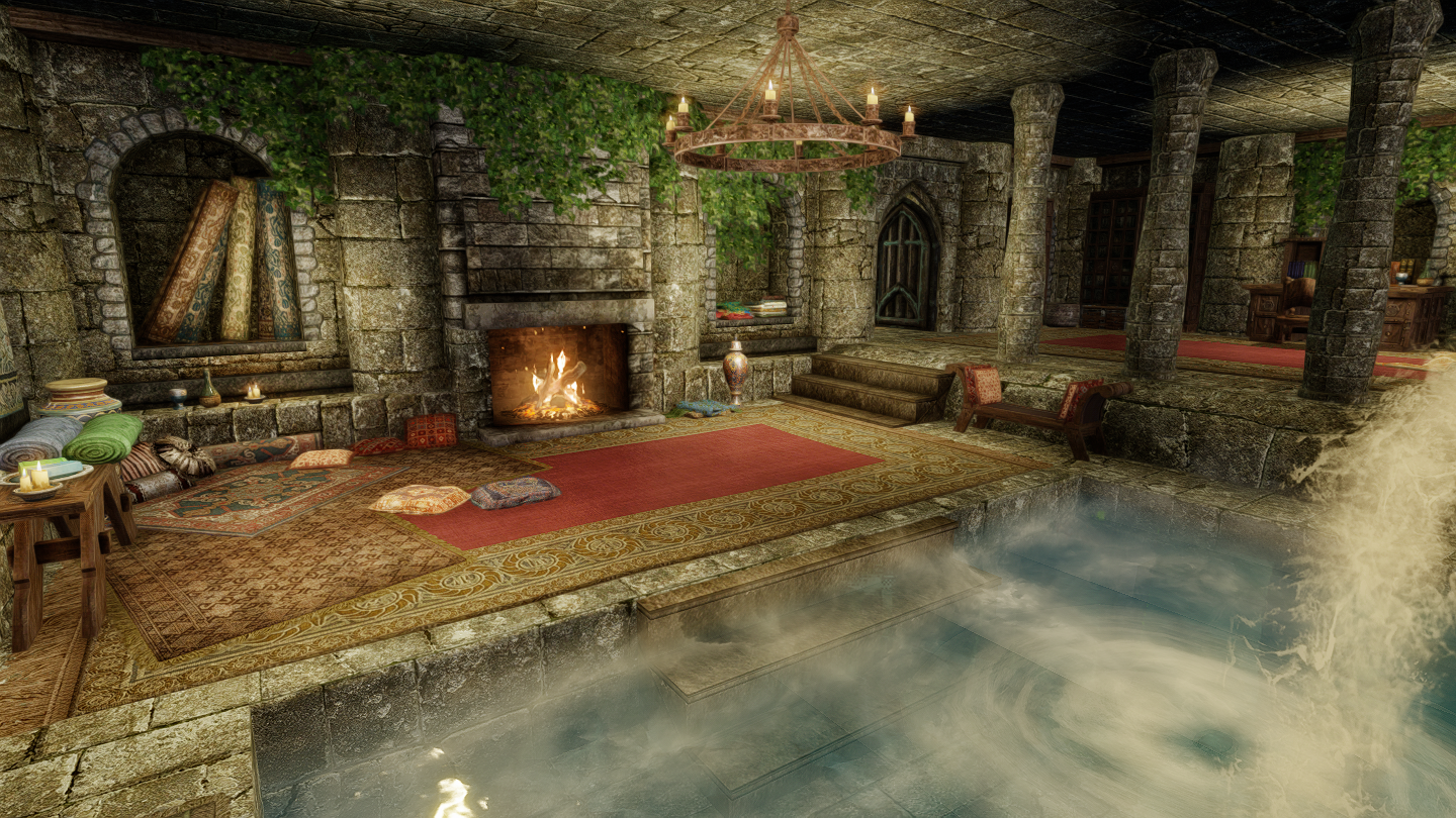 ホワイトランのペラジア農園近くに、古城タイプのプレイヤーハウスを追加するMODです。子供用を含むたくさんのベッドや一通りの生産設備、何種類もの屋内プールなどが用意されています。