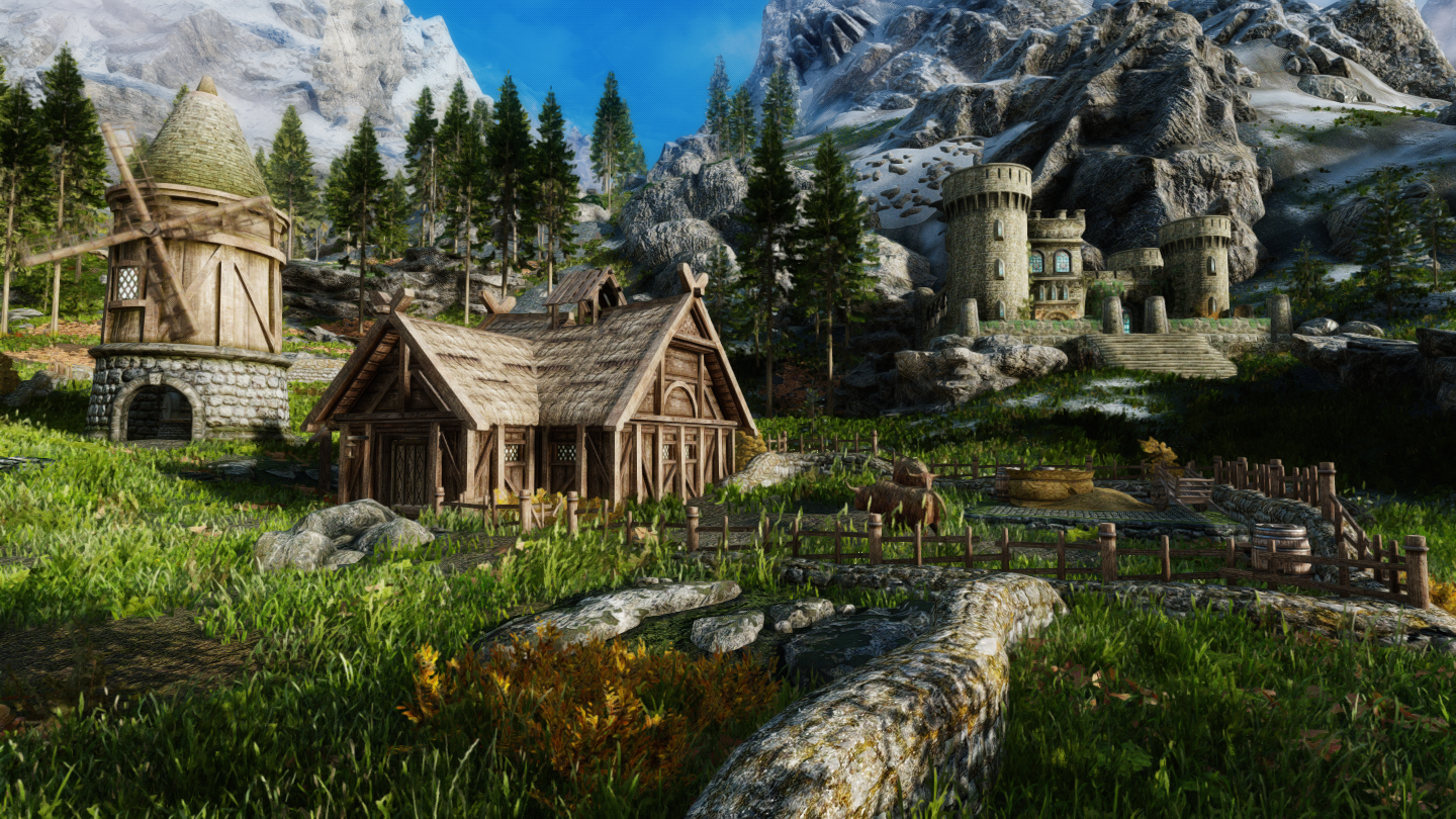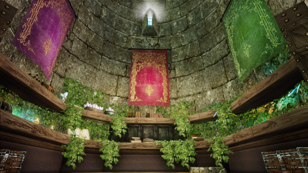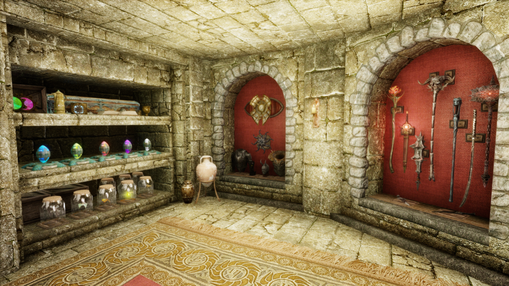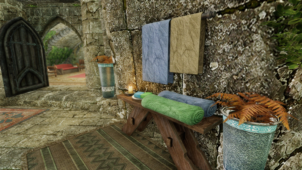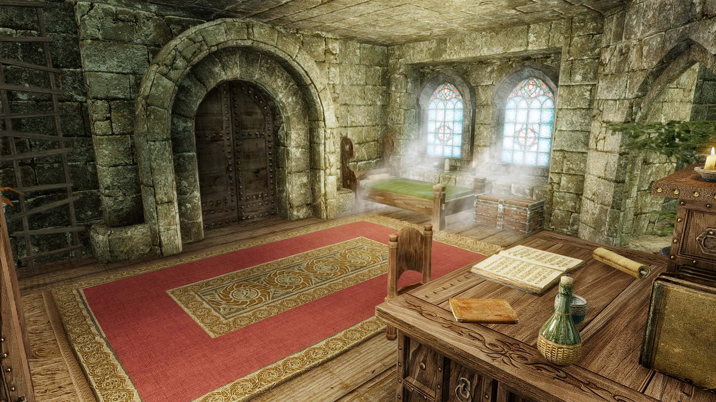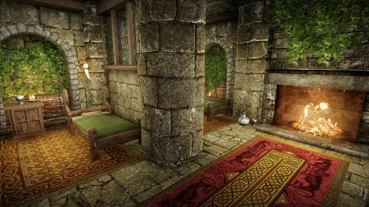 ホワイトランのペラジア農園近くに、古城タイプのプレイヤーハウスを追加するMODです。子供用を含むたくさんのベッドや一通りの生産設備、何種類もの屋内プールなどが用意されています。
