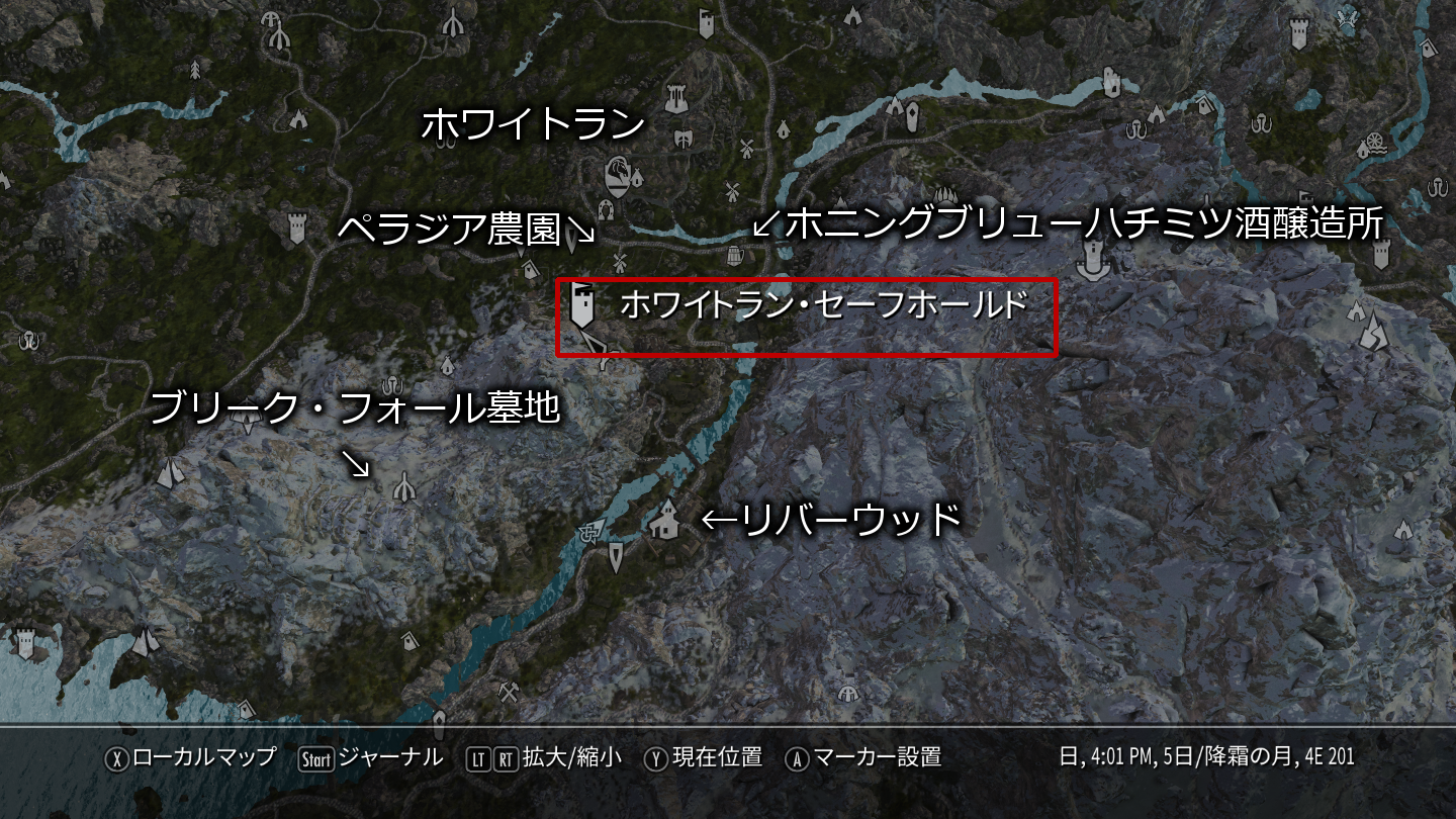 リバーウッド方面からだとホワイト川沿い/ブリークフォール墓地がある山経由、どちらのルートからでも到達可能です。