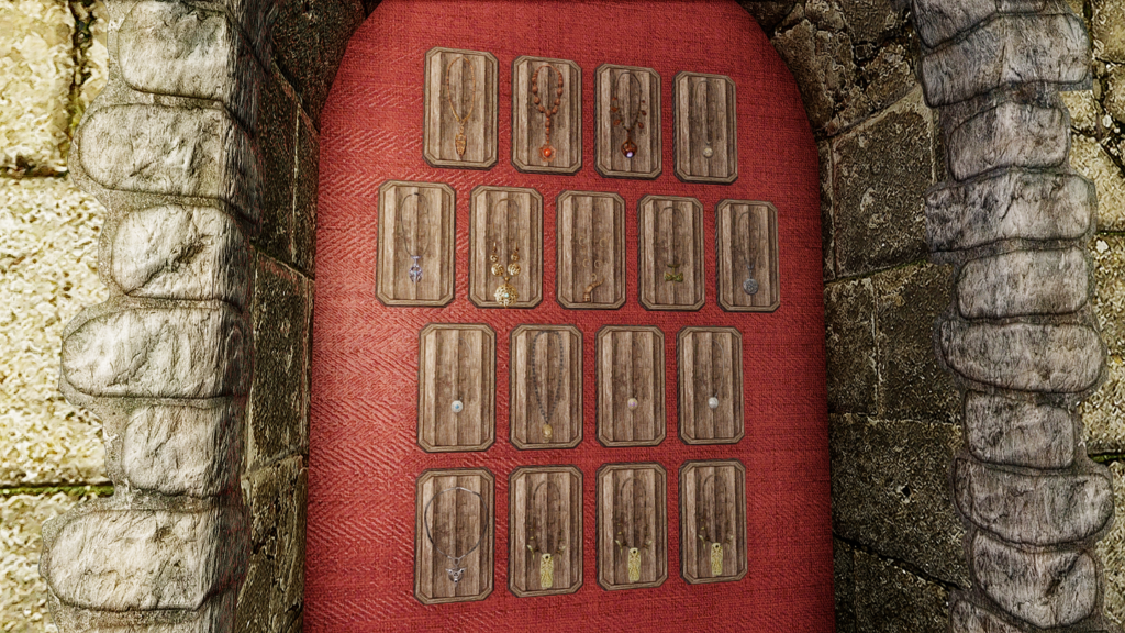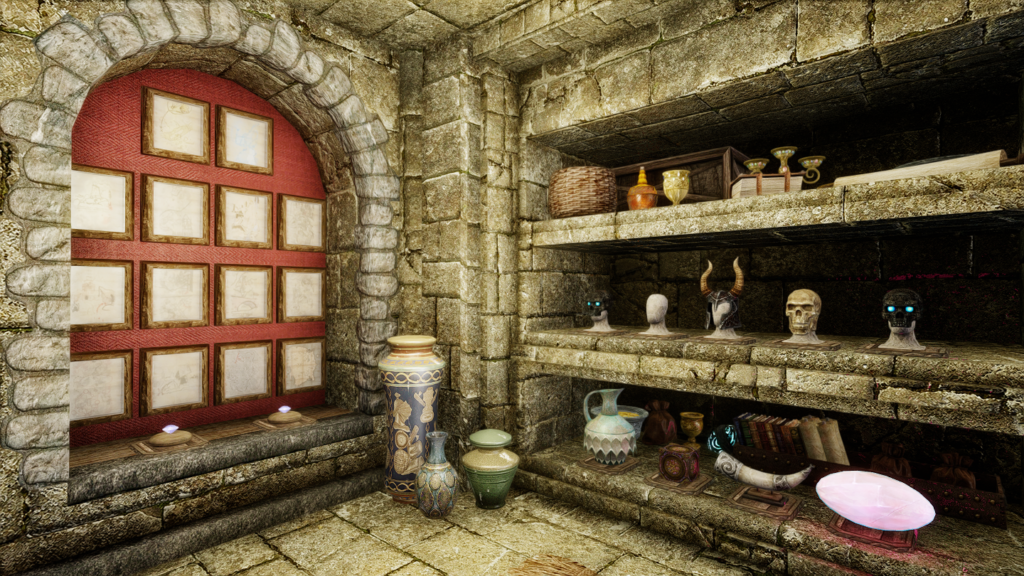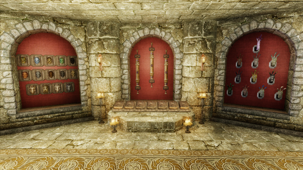 爪や仮面、アーティファクトだけでなく、宝の地図や書籍関連の展示スペースもあります。普段あまり見かけないかもしれないユニークアイテムも展示できるようになっていました。