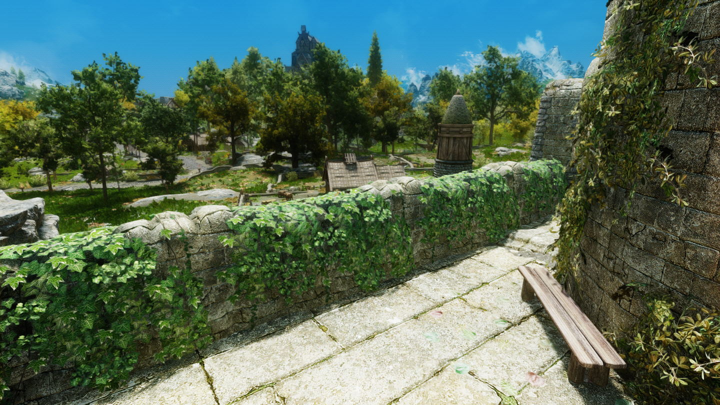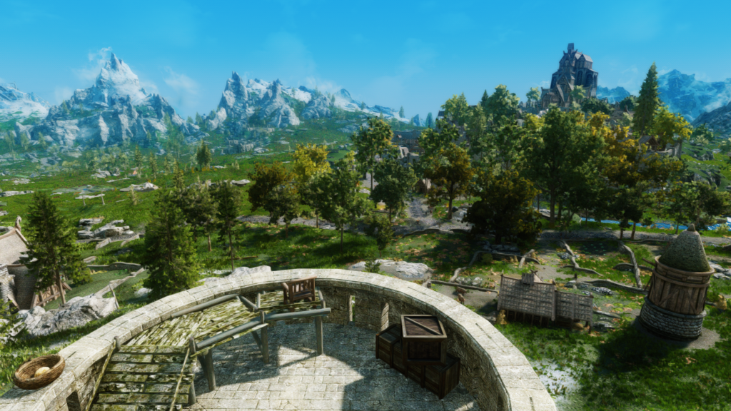 屋内の各扉から、中庭や塔の屋上部分に出られます。いろんなところに椅子も置かれており、ゆったりとホワイトラン周辺の景色が楽しめます。