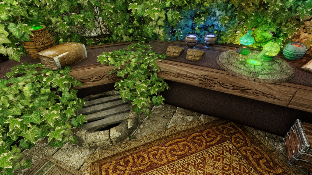 床にある扉から後述の地下庭園に入ることができます。杖用の付呪器もそちらにあります。