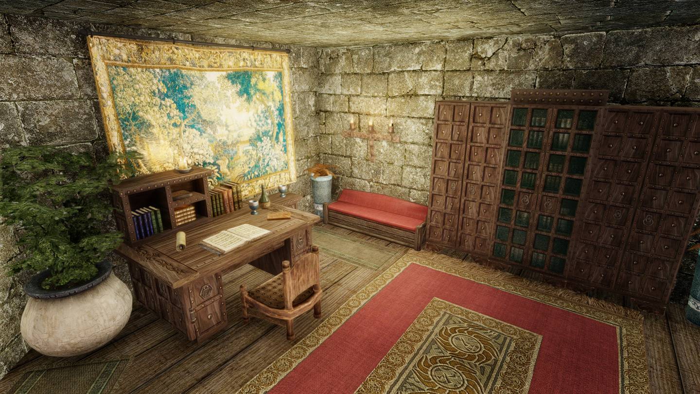 古風ながらも格調高い雰囲気のお城MODです。天蓋付きのベッドや石壁に垂らされたタペストリーからも歴史を重ねたお城らしさが感じられました。