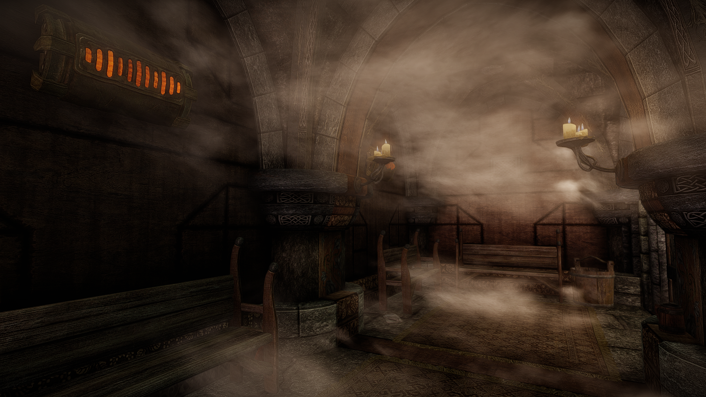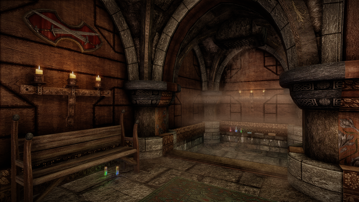 ウィンターホールドにロアフレンドリーな公衆浴場を追加するMODです。シャワーやスチームルーム(サウナ)などもあり、それぞれ入るとバフがつくようになっています。ウィンターホールド大学近くの橋脚に入口が追加されます。
