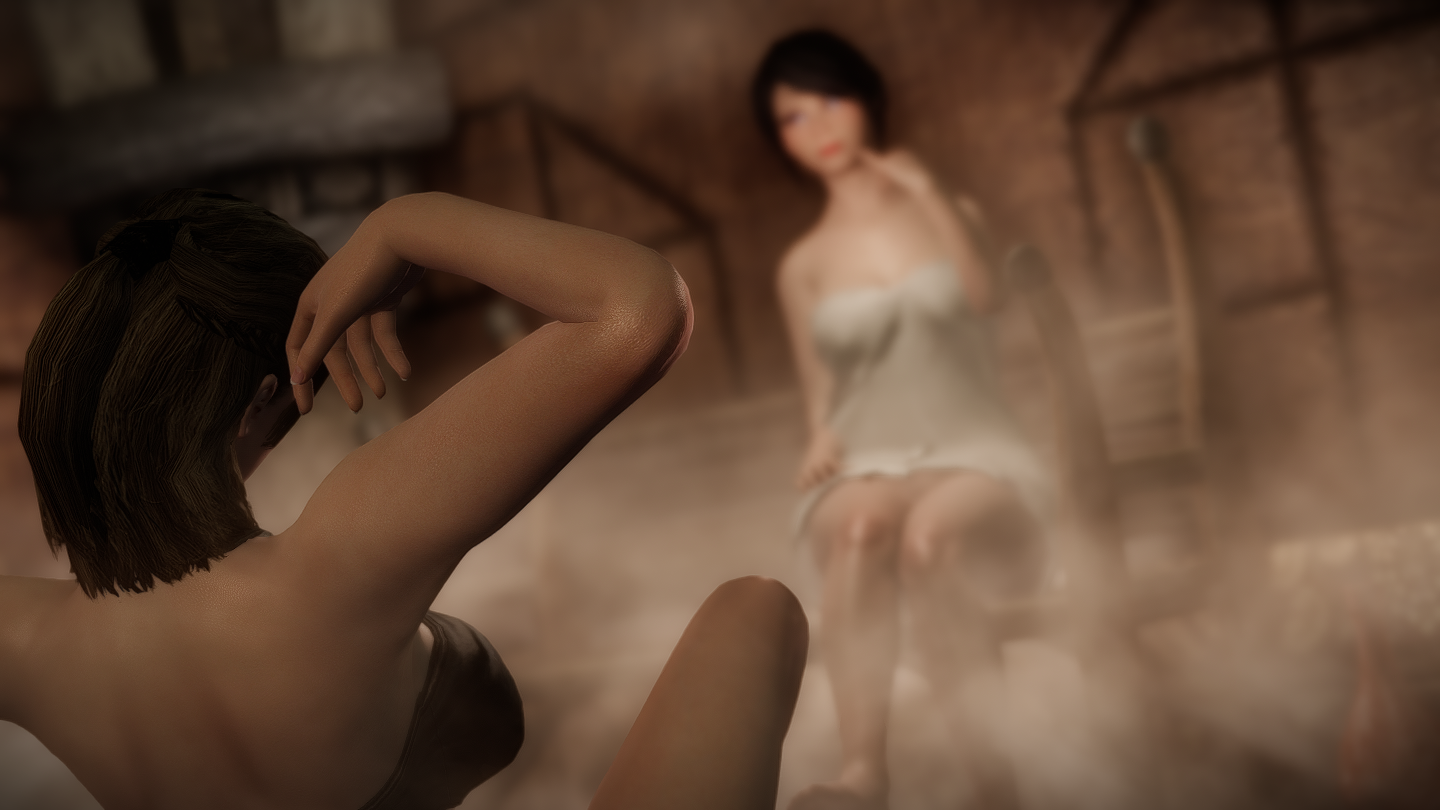 下記で紹介している、このMODで追加されたNPCたちも入浴しに来ているのをよく見かけました。混浴らしく、各々のタイミングで入浴しています。