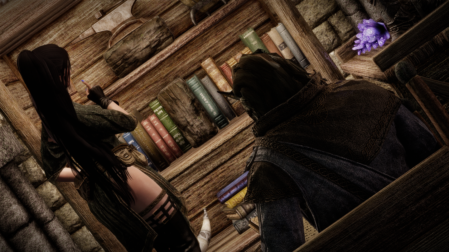 ちょうどウ大クエストをやっているので、バニラからいる学友や学生追加MOD(College Students SE)のNPCたちも連れてきてみました。下宿先近くの銭湯に通ってるような雰囲気がありますね。