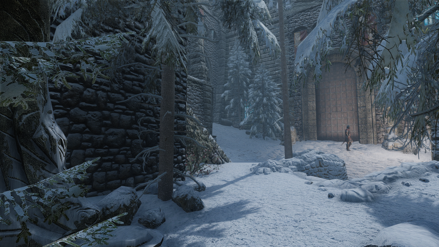 リテクスチャMODである「Extravagant Interiors – Solitude」を導入して撮影したものです。主にソリチュードの建物内の雰囲気を変えるリテクスチャMODですが、このお城の内装にも反映されていました。