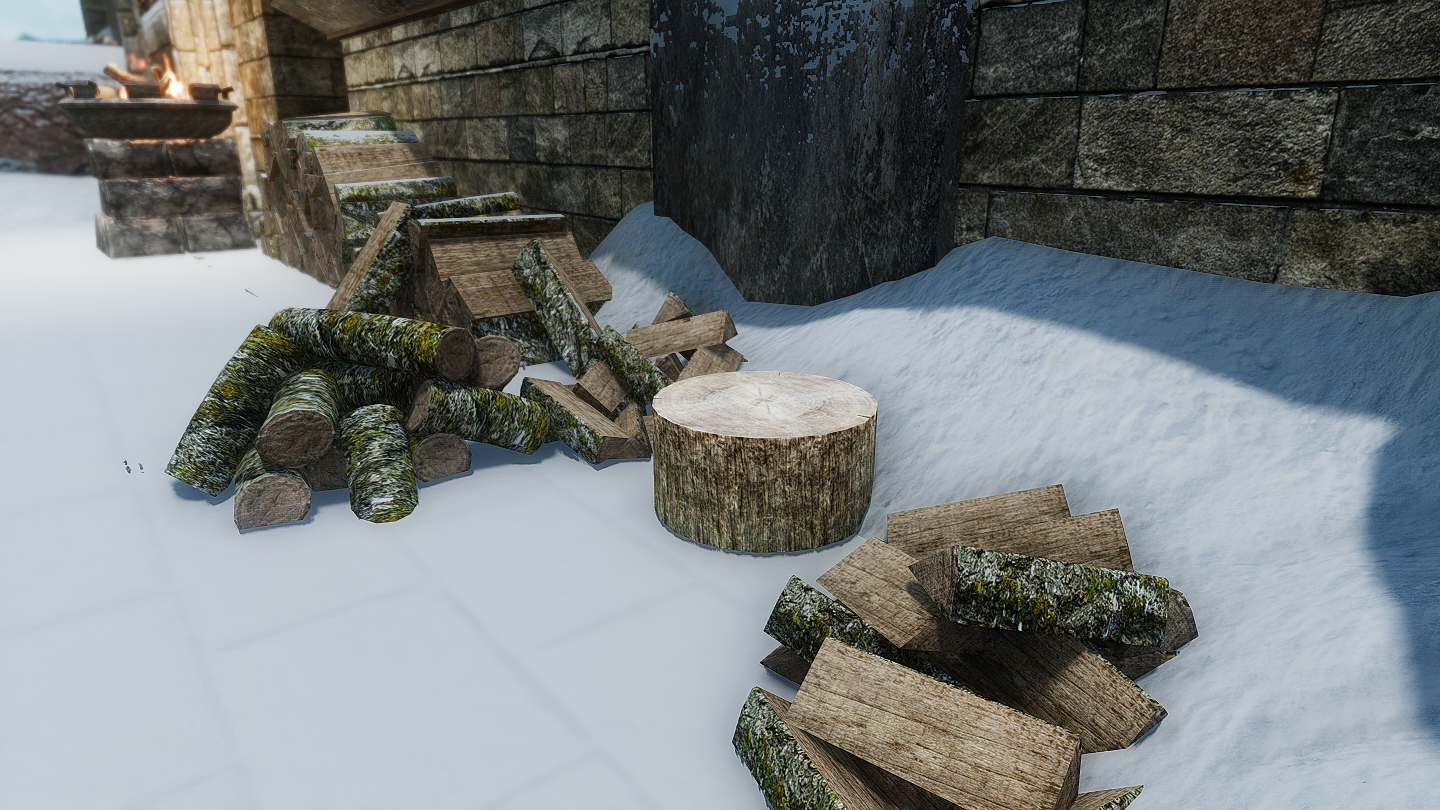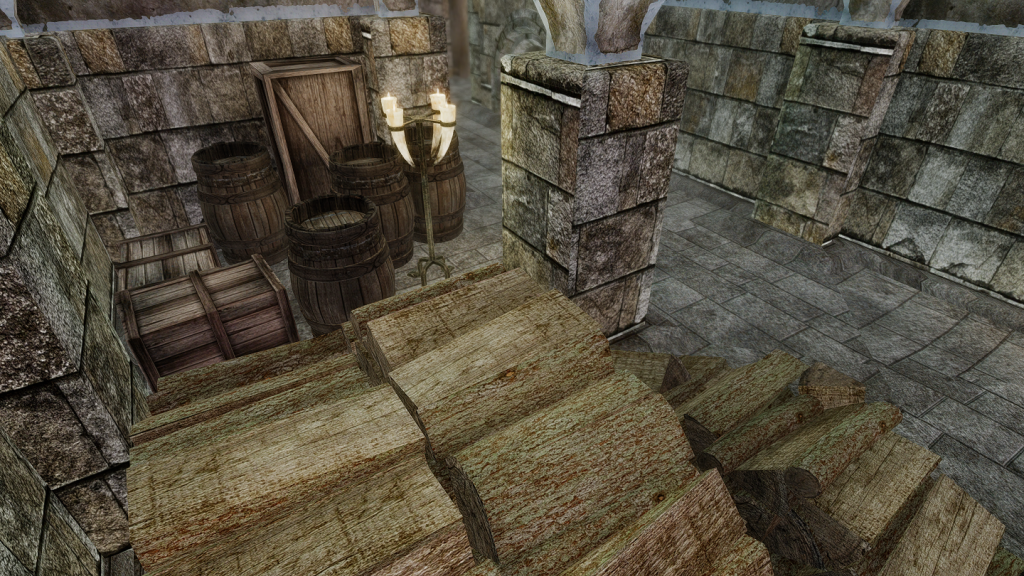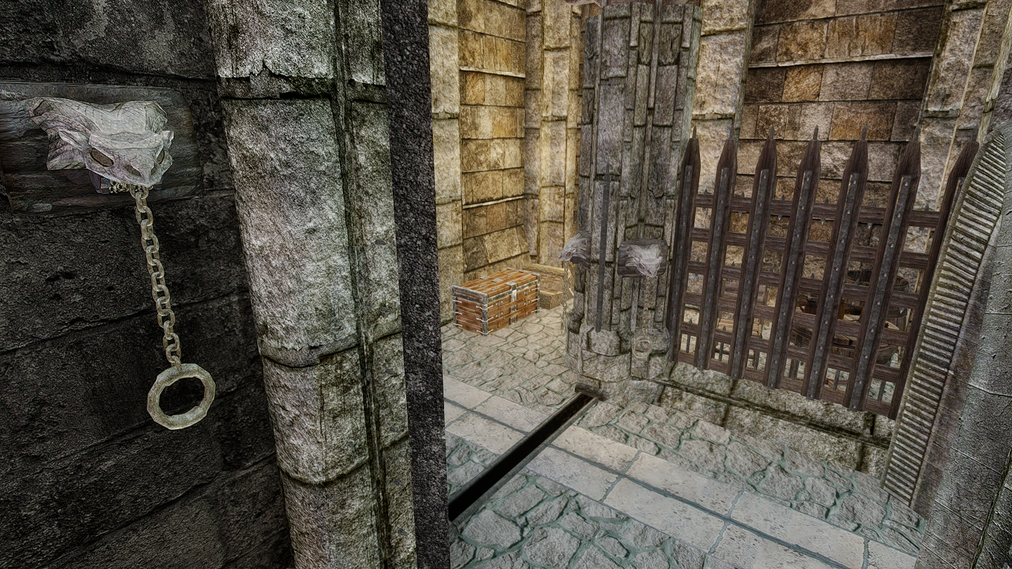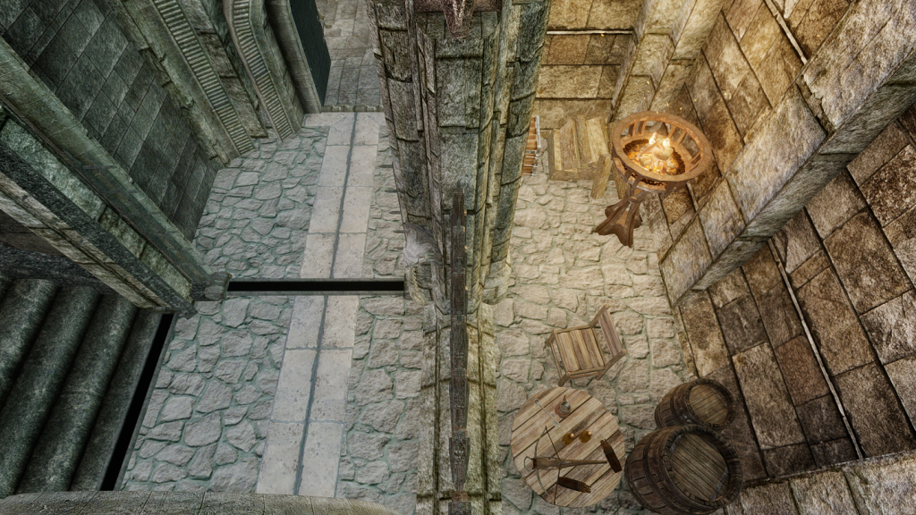 監獄やその周辺の画像です。薪が積まれている辺りは、上の階と中身がリンクした収納スペースにもなっていました。