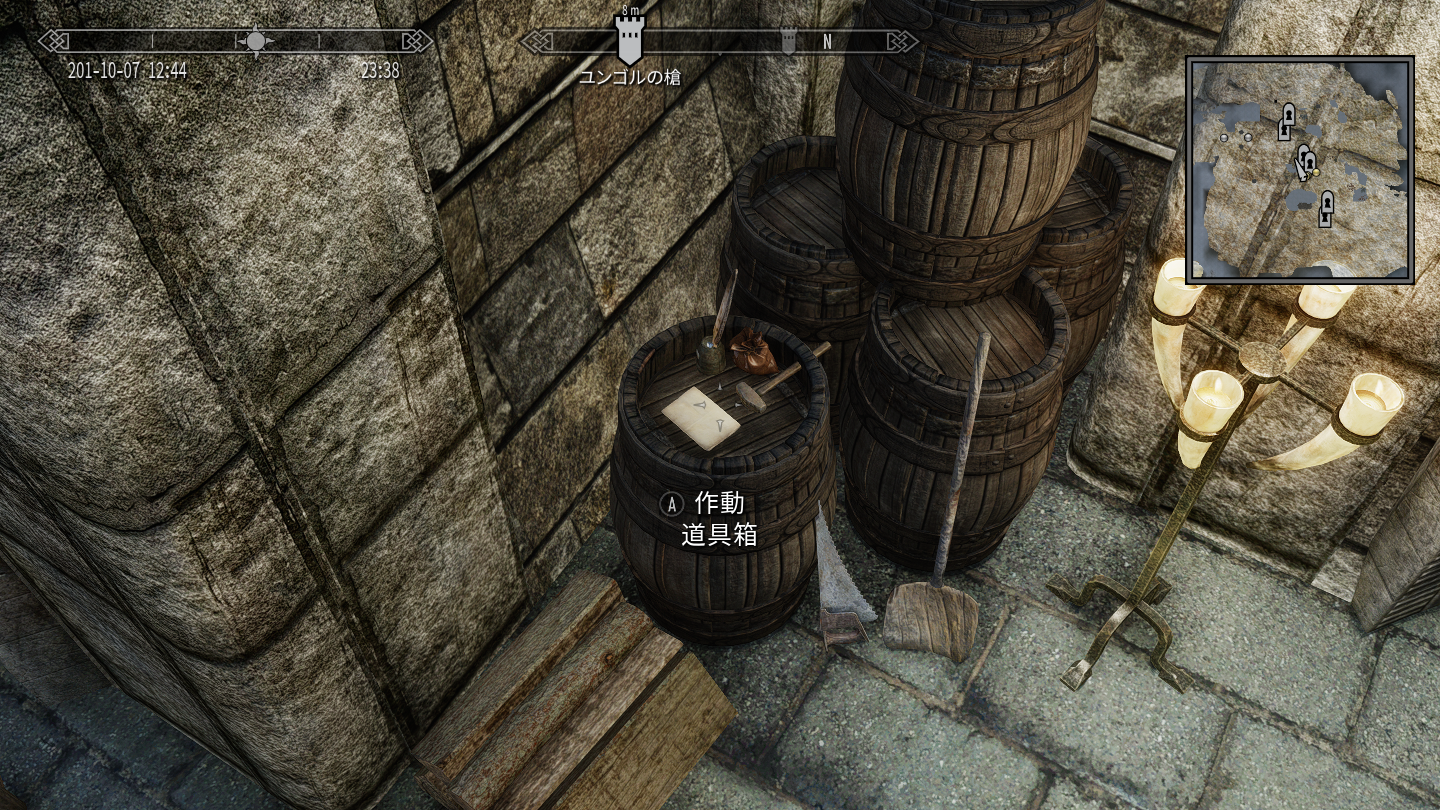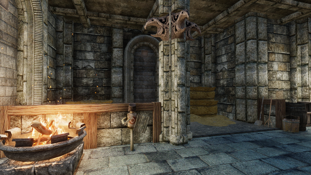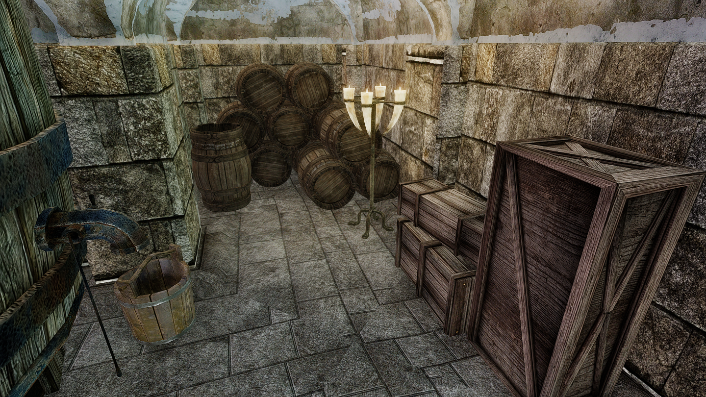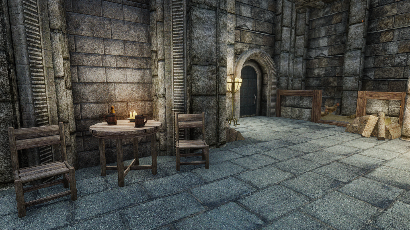 監獄やその周辺の画像です。薪が積まれている辺りは、上の階と中身がリンクした収納スペースにもなっていました。
