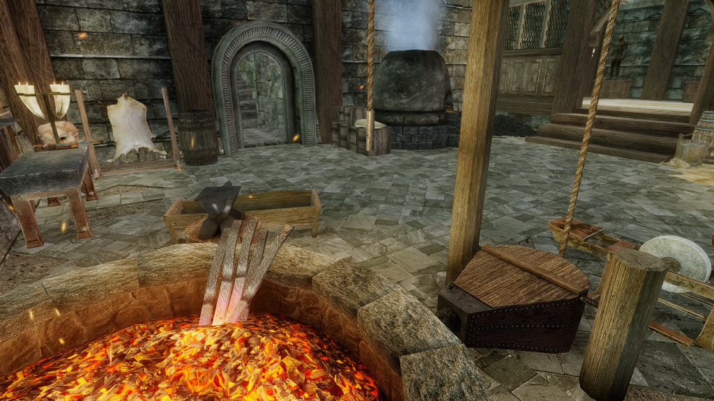 - 地下:皮なめしの棚/作業台/鋳造器具/砥石/溶鉱炉/マネキン