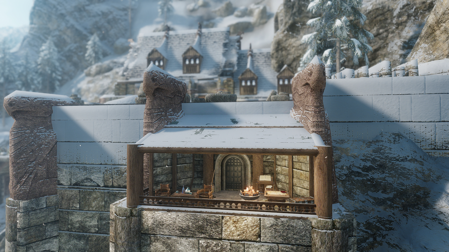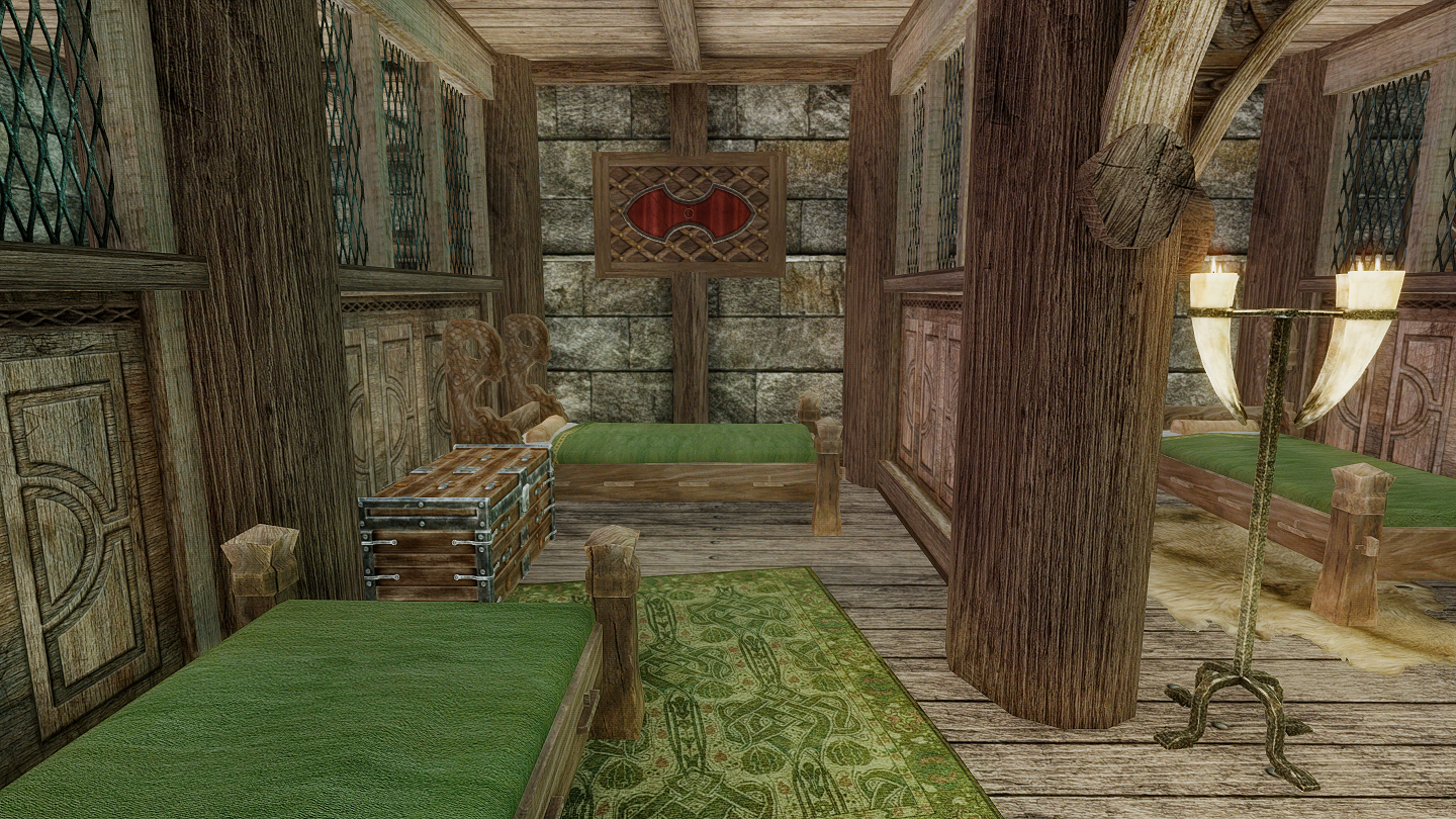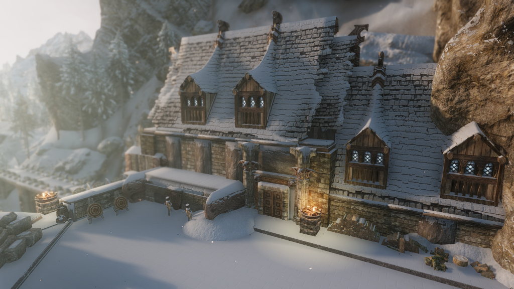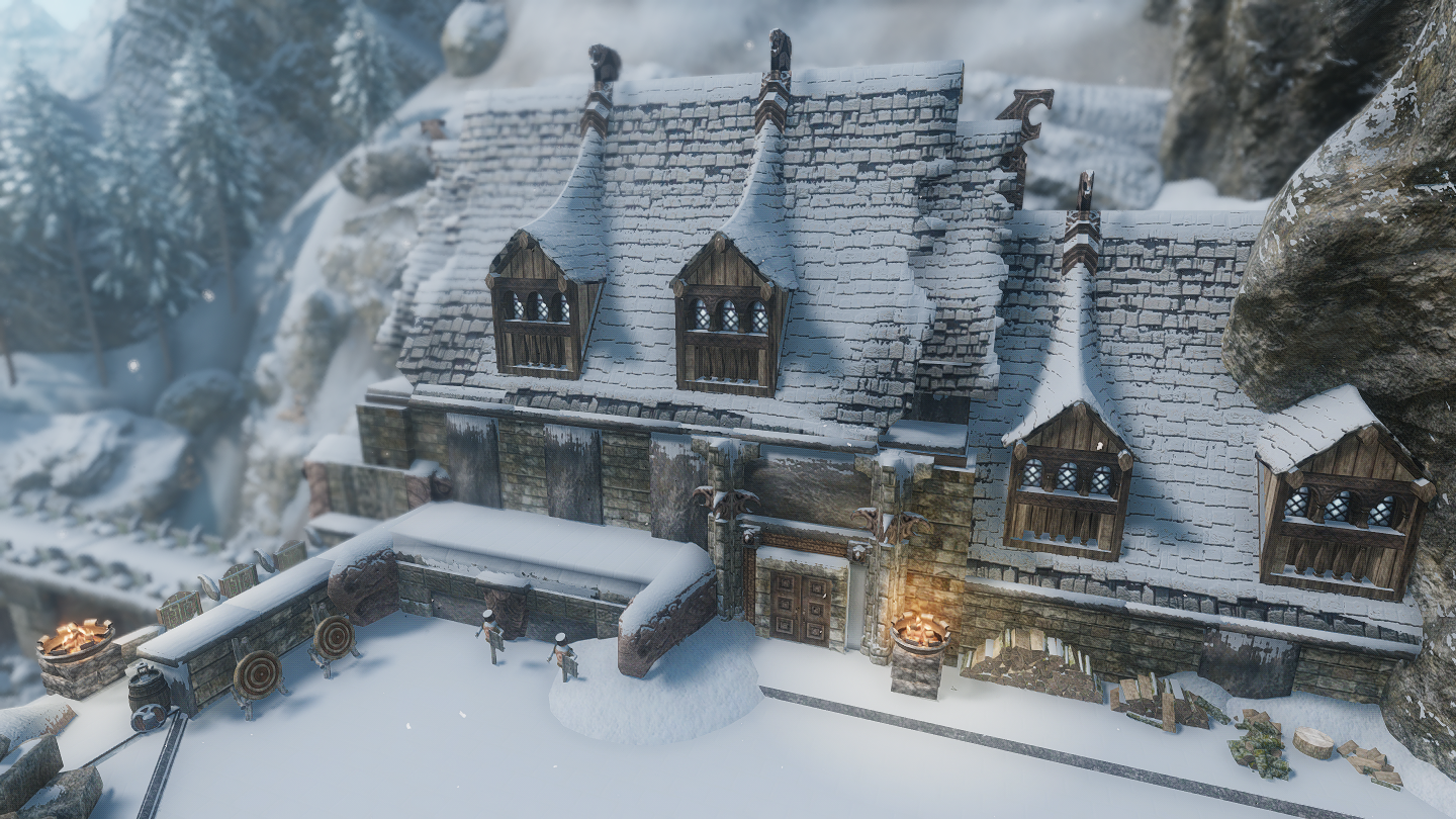 イーストマーチとペイル間の山に建つ、砦のような堅牢さが感じられる家MODです。一通りの生産設備やたくさんのベッド、子供用ベッドなどもあり、どんなプレイヤーも安心かつ快適に過ごせそうな造りです。