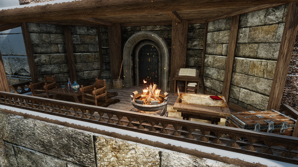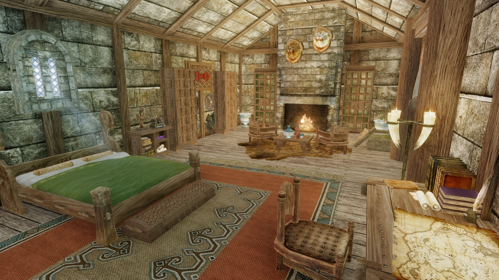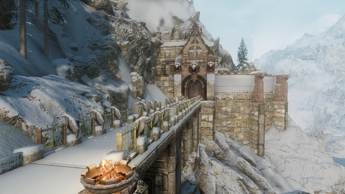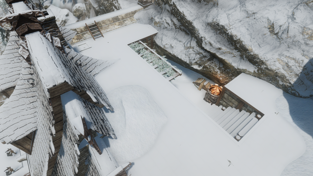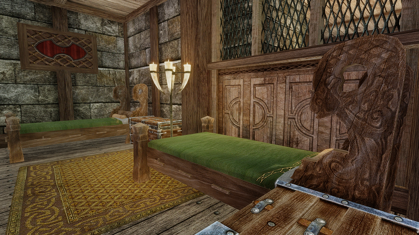イーストマーチとペイル間の山に建つ、砦のような堅牢さが感じられる家MODです。一通りの生産設備やたくさんのベッド、子供用ベッドなどもあり、どんなプレイヤーも安心かつ快適に過ごせそうな造りです。