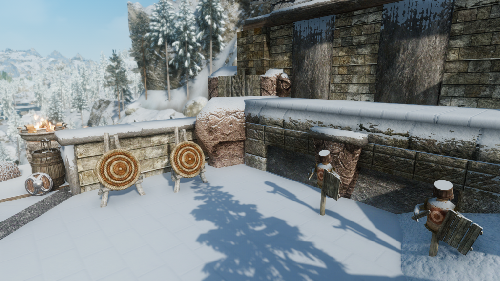 イーストマーチとペイルの境界付近、アンガの工場の北側に、砦のような家を追加するMODです。一通りの生産設備に内風呂や養子用ベッド、家へのテレポート魔法なども用意されています。